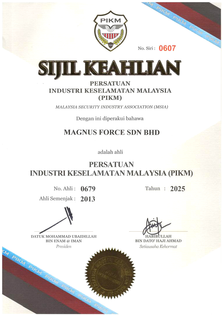 Magnus Force is licensed and accredited by Kementerian Dalam Negeri Malaysia (KDN) or the Malaysian Ministry of Home Affairs, to provide security services as well as to carry out private investigations. It is also allowed to employ trained Nepali security personnel to be deployed upon the request of clients.
